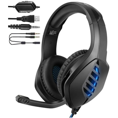 Amazon Com J1 Stereo Gaming Headset With 7 1 Surround Sound For Ps4 Ps5 Pc Xbox One Controller Led Light Bass Surround Noise Cancelling Over Ear Headphones Mic Blue Electronics